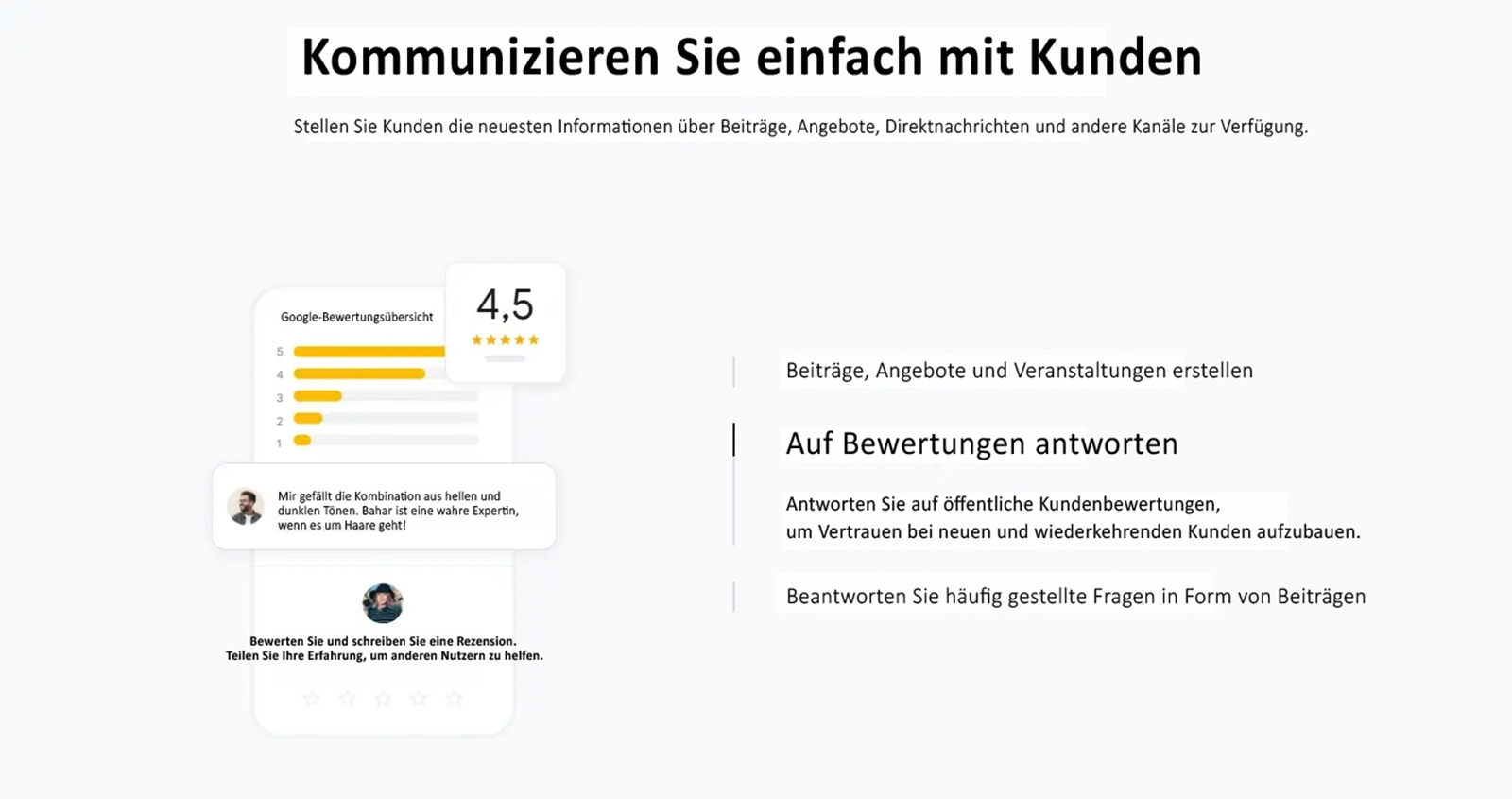 - Schnelle, lösungsorientierte Antworten auf Kundenbewertungen