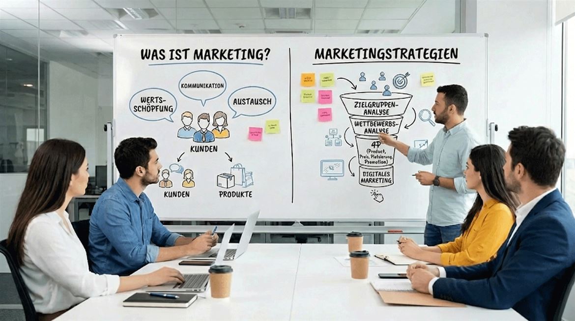 Marketing ist ein geplanter Prozess der Kommunikation und Wertschöpfung, der es einem Produkt oder einer Dienstleistung ermöglicht, eine starke Verbindung zur Zielgruppe aufzubauen. Die Grundlage des Marketings besteht darin, die richtige Zielgruppe zu kennen, ihre Bedürfnisse zu verstehen und passende Lösungen zu entwickeln. Dieser Prozess umfasst nicht nur einen verkaufsorientierten Ansatz, sondern auch eine Struktur, die die Markenwahrnehmung stärkt und auf langfristige Beziehungen abzielt.